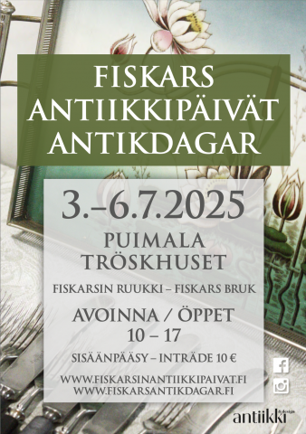 Fiskarsin Antiikkipäivät 29.6.-2.7.2023 Fiskarsin Puimalassa.
